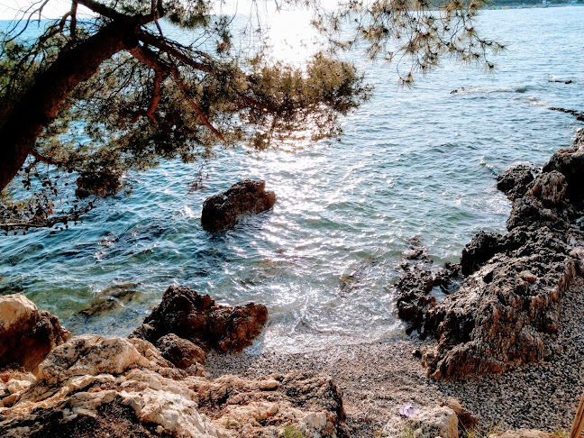 Mirno i čisto mjesto. Besplatan parking u zoni borove šume uz more. Nekoliko mjesta s popločanim terasama i ljestvama za pristup vodi. Plastične ležaljke dostupne po 30Kn, samo ih uzmite i platite kad djelatnik stigne, inače se preporuča madrac s obzirom da nema pijeska. Besplatni toaleti i nekoliko restorana na raspolaganju gdje također možete uzeti hranu za ponijeti.